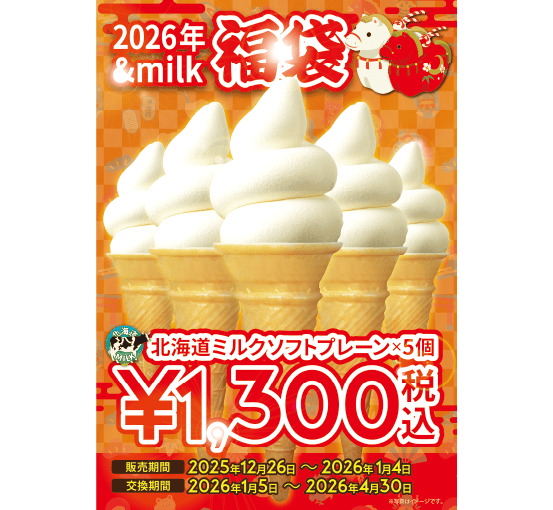 北海道ミルクソフトプレーン×5個引き換えられる福袋券です!
