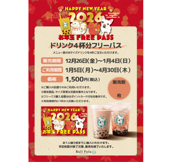 Mサイズのドリンク4杯分のフリーパスです!